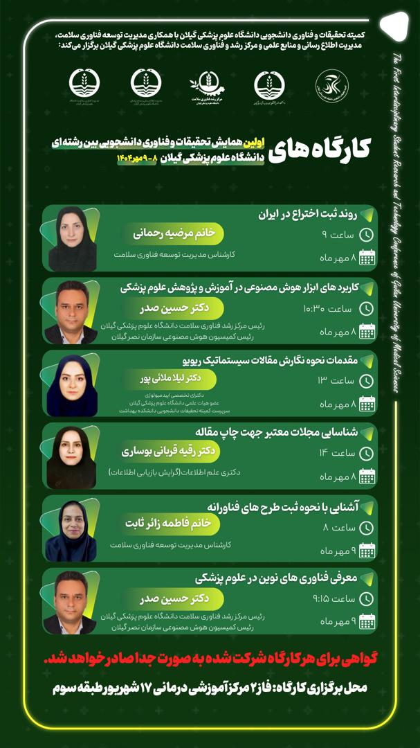 پوستر کارگاههای همایش دانشجویی بین رشته ای دانشگاه علوم پزشکی گیلان