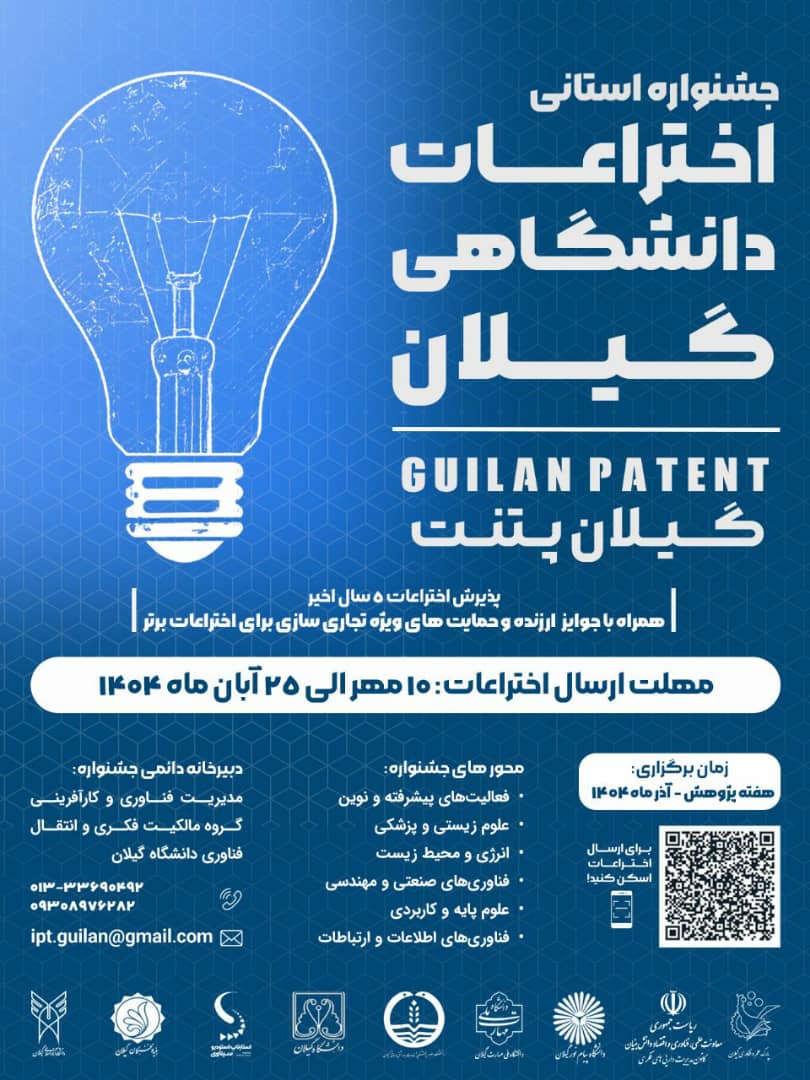 این جشنواره فرصتی ارزشمند برای شناسایی، معرفی و تجاریسازی اختراعات نوآورانه در سطح استان گیلان است و با هدف ایجاد ارتباط میان دانشگاه، صنعت و بازار برگزار میشود. برگزیدگان این رویداد از حمایتهای ویژه و جوایز ارزشمند برخوردار خواهند شد.